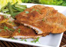 nach Wiener Art mit Bratkartoffeln und Bohnen