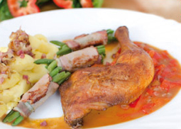 und Bohnen im Speckmantel