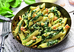 aus Bio Gnocchi und Bio Champignons, pikant gewürzt, mit Basilikum abgerundet
