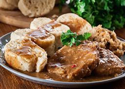 dazu Sauerkraut und Knödelscheiben böhmische Art
