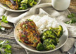mit gedünstetem Broccoli und aromatischem Reis
