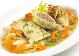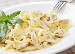 mit Champignons und Zwiebeln, dazu Bio-Spiralen