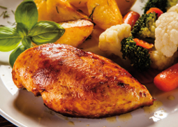 41121 Hähnchenbrustfilet, natur, gegart, gebräunt 120g, 1 Stück