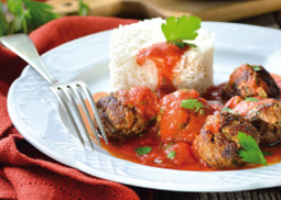 vom Rind mit Tomatensauce am Reistürmchen
