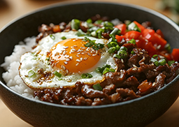 weißem Bio-Reis, Bio-Paprikawürfeln und Bio-Tomatenwürfeln