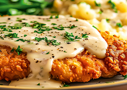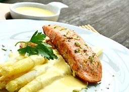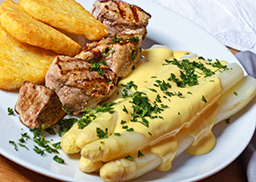 mit Kartoffel-Knoblauch- Püree, an feinen Bohnen