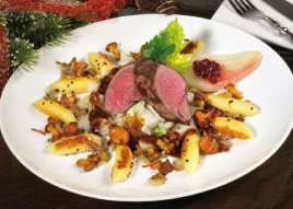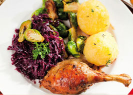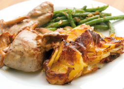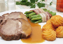 dazu Bohnenröllchen und Herzoginkartoffeln