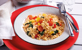 Zartweizen al dente, mit gelbem und rotem Paprika sowie Cherrytomaten, lecker abgeschmeckt und tiefgefroren gegart
