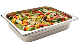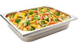 Mischung mit Blumenkohl, Kohlrabi, Karotten Orange und Gelb und Petersilie, ummantelt in einer Soße mit Sonnenblumenöl, Rapsöl und Wasser, vorgegart