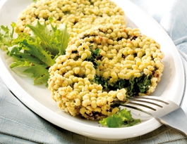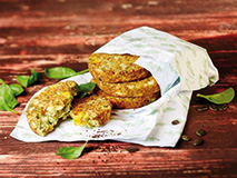panierte Spinatplätzchen mit nussigen Dinkelkörnern und herzhaftem Gouda