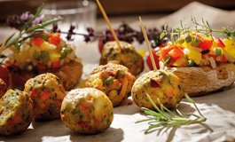 kleine vegetarische Gemüse-Bällchen aus feinem Gartengemüse und herzhaften Gewürzen