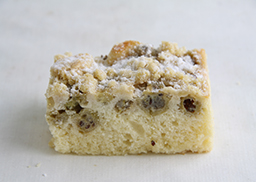 Boden aus heller Rührmasse, bedckt mit Stachelbeeren, dekoriert mit Streusel, fertig gebacken