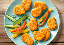 Hähnchenfleisch fein zerkleinert, paniert und vorgebacken, solange Vorrat reicht
