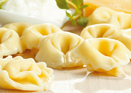 kochfeste, längliche Teigtaschen aus gerolltem Nudelteig mit Rindfleisch-Füllung, vorgegart
